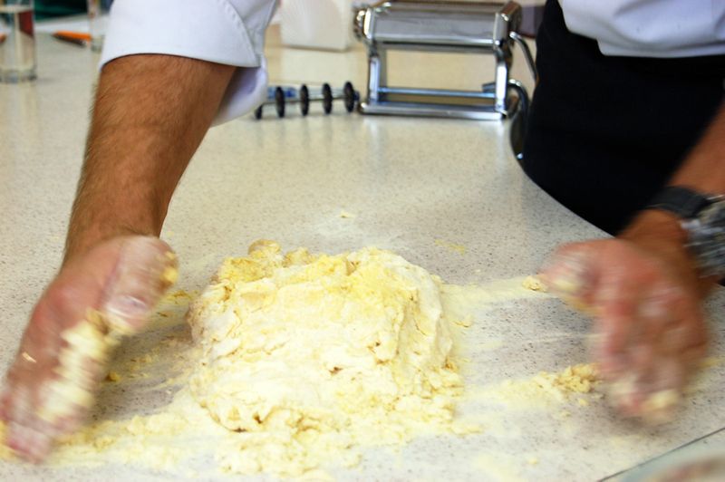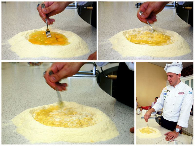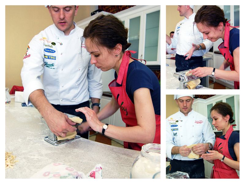 В субботу я побывала на своем втором мастер-классе — «Готовим пасту дома»!!! Ооо, это было нечто!!! Я ужасно вдохновилась, если можно так сказать) Сравнивая первый и второй мастер-классы - небо и земля) Показывал чудеса всем собравшимся Антон Каленик — шеф-повар «Бистро Де Люкс»! К слову, я там была всего пару раз, но, до сих пор не могу забыть вкуснейшие равиолли с тыквой!)) Длился мастер-класс целых 4 часа, которые пролетели для нас совершенно незаметно!! Для себя я решила не выносить все рецепты в один пост, так как это было бы слишком неохватываемо))) Для начала покажу вам, как можно приготовить настоящую пасту дома, ну а потом уже охватим начинки к ней!)
