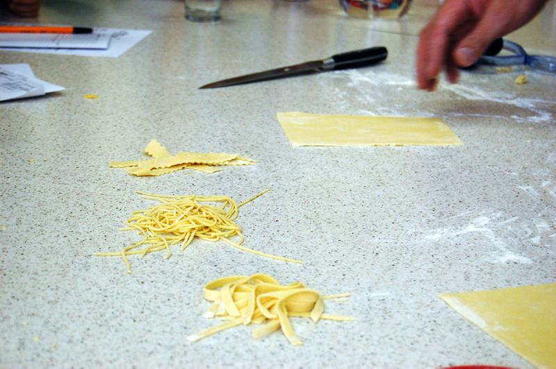 Его прямо таким длинным можно уже резать на пасту, а можно разделить на более удобные маленькие кусочки.