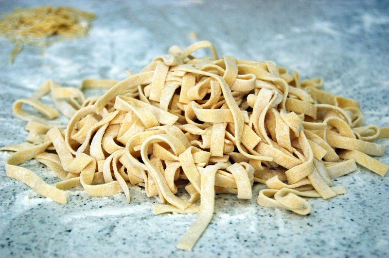 Такую домашнюю пасту, увы, нельзя долго хранить, а лучше всего варить ее сразу. Но, если уж совсем хочется, то можно завернуть в пищевую пленку и в холодильник! Но не более чем на 3 дня!
