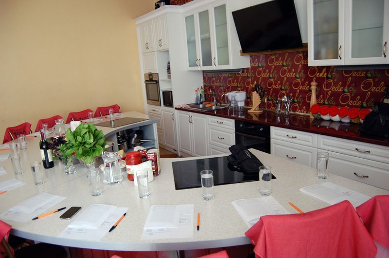 В одном своем дне я уже показывала студию-кухню, где все это творится, но покажу еще раз) Стол накрыт на много человек, на самом деле нас было 7! Стол большой, места много!)