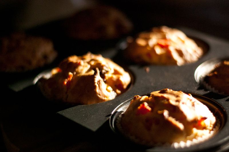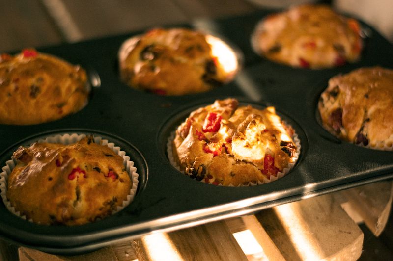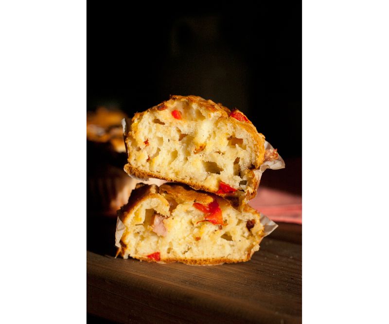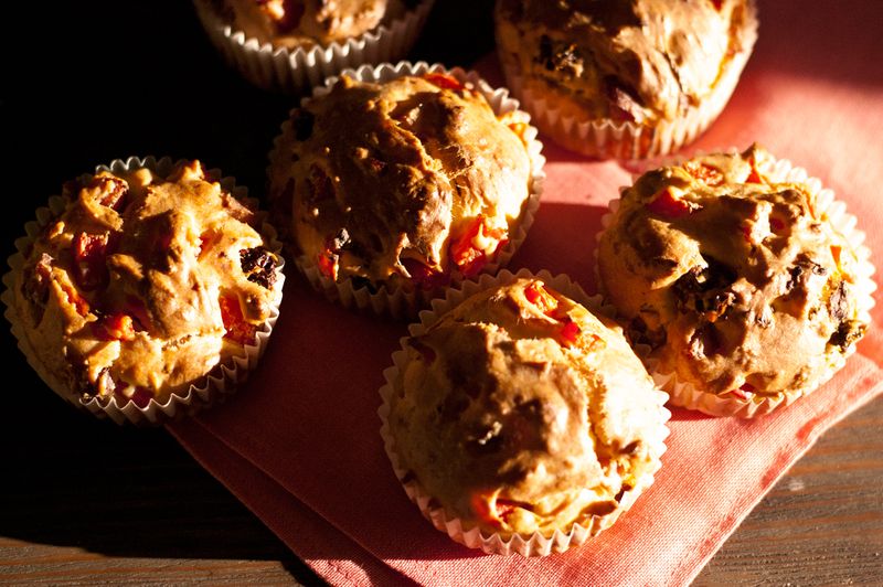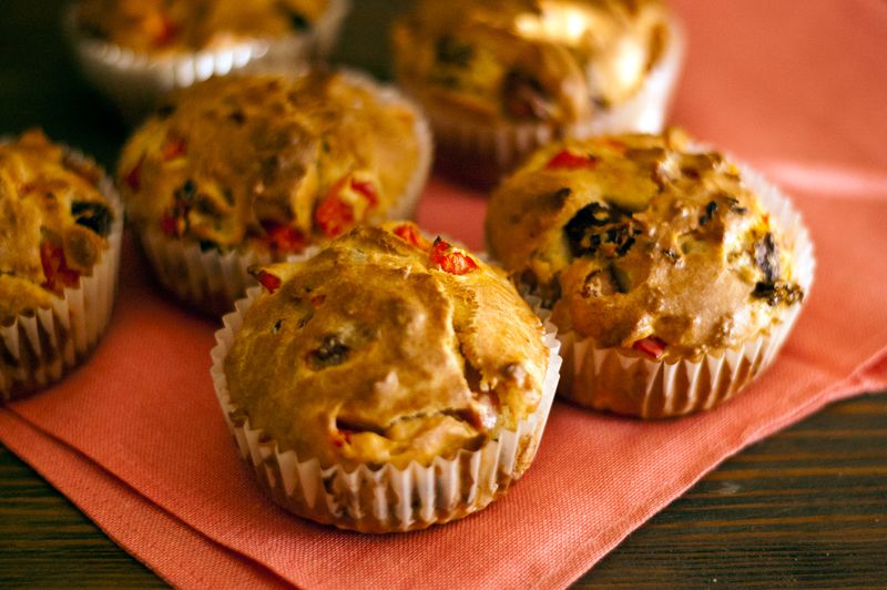 Маффины с вяленым томатом, перцем и копченой колбасой