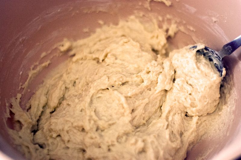Йогурт, яйцо, соль по вкусу, масло подсолнечное/оливковое - смешиваем. Туда же добавляем муку, разрыхлитель - перемешиваем до однородности.